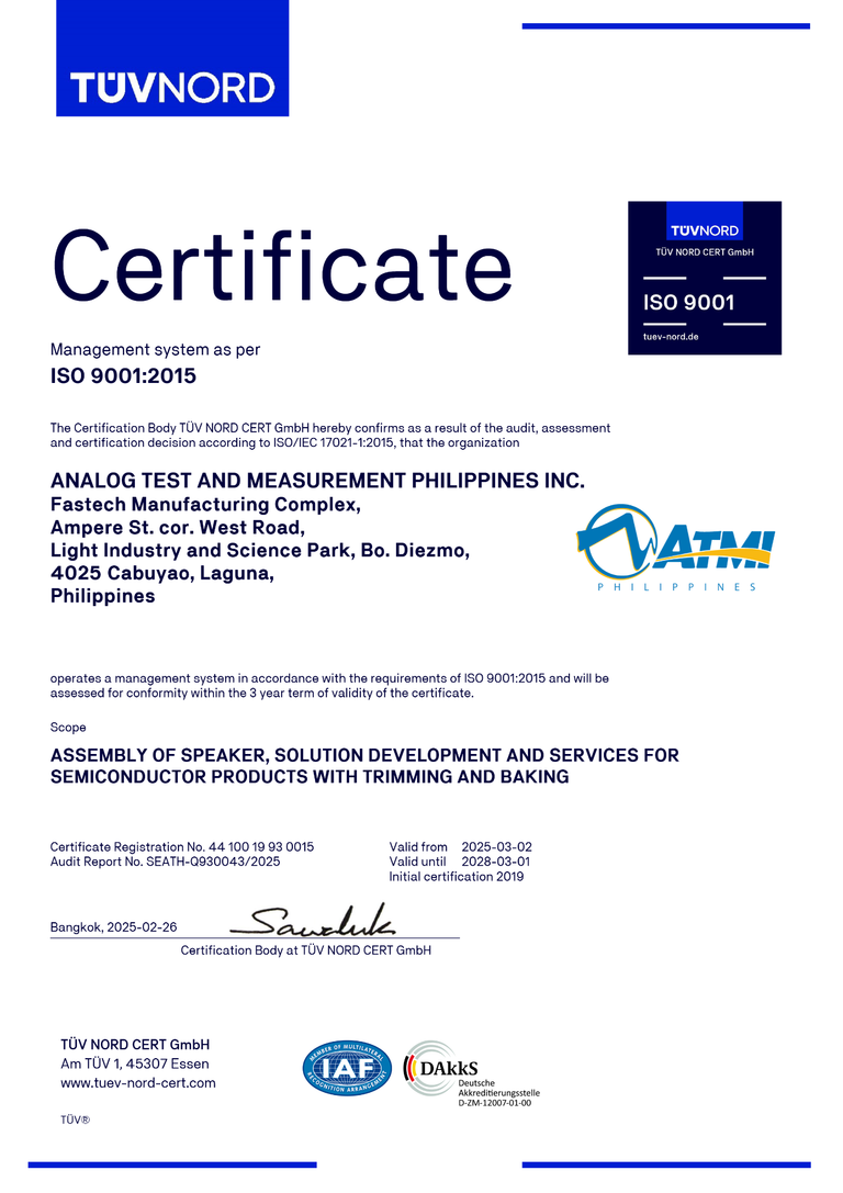 Analog Test and Measurement Philippines, Inc. is dedicated to empowering the semiconductor industry with state-of-the-art testing solutions. With a focus on quality, precision, and efficiency, we strive to exceed client expectations and lead the way in semiconductor testing technology.